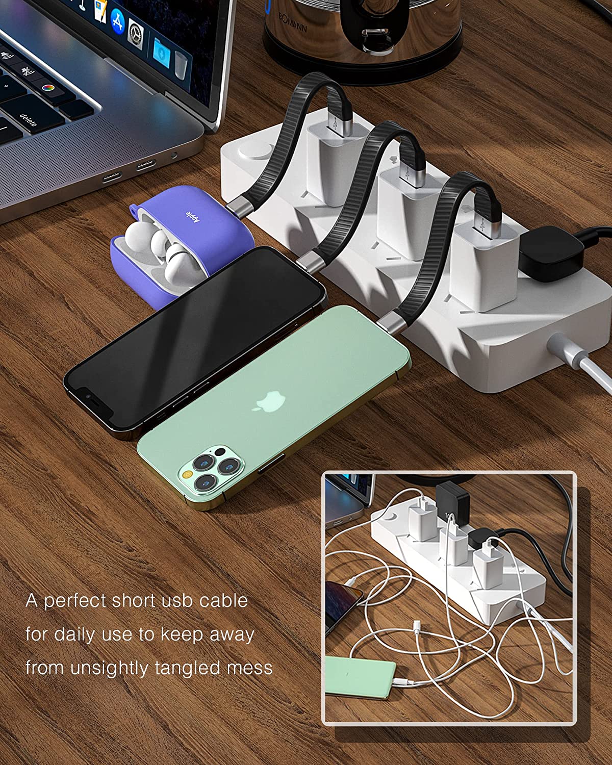 【Portable Pocket Design】: 5.5 inch short iPhone wire, perfect for your battery pack, charging station and power bank. An ideal charging cable when traveling or on business trip