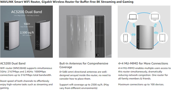 • 【2,500 sq. ft Coverage】 – With beamforming technology, this powerful router provides stable wifi in every corner of your house.