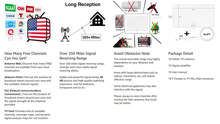 3. If the signal is not satisfying or only a few channels are available, try connecting or removing the amplifier. (You can Remove the Detachable signal amplifier if your house is within 20 miles range from the tower. We do NOT Recommend to use the signal amplifier if your house is very close to the broadcast tower and the signal is already very strong.)