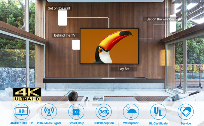 Indoor TV Antenna - HD Digital TV Antenna with 4K Signal Amplifier 250+ Miles Long Range -Support 1080p Freeview HDTV - Work with All Types TV