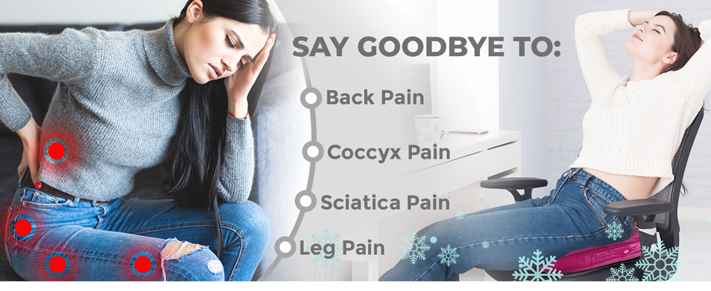 • Cooling gel memory foam seat cushion: This coccyx cushion is made from high-quality memory foam to offer comfort and to help relieve back pain, tailbone pain, and sciatica. Layered over the memory foam is a padding of cooling gel meant to keep users cool and comfortable throughout the day. This cushion is ideal for office chairs, wheelchairs, airplanes, or for use in a car. Great for short and long trips.