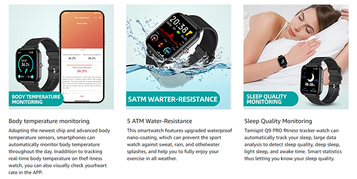 Tamispit Q9 PRO Fitness Smart WatchExercise and Body check Are Always Under Your Control!