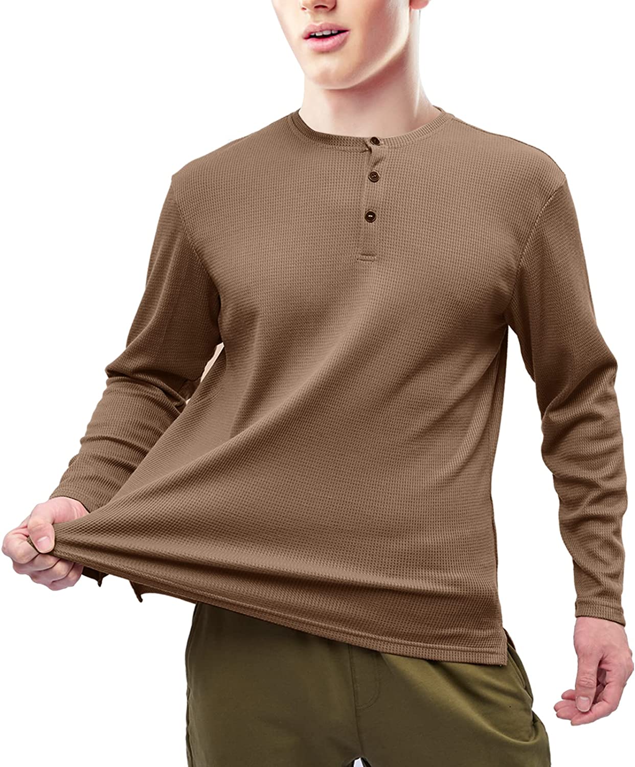 Mens Henley Long Sleeve Shirt – Casual Button Tshirt Wrinkle Free Henley Neck Pullover T Shirt Sport Tee Top