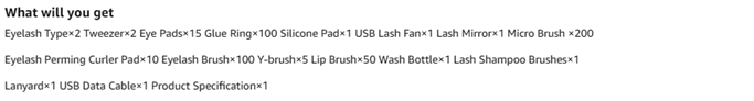 • 【More Functions】 More accessories! ①Suitable for practicing how to extend eyelashes, or daily eyelash extension supplies: glue ring, eye pads, silicone pad, tweezer, Mini Fan, eyelash brush ②For eyelash perming or lifting, supplies: Y-brush, silicone eyelash perming curler pad, eyelash type, micro brush, lip brush, lash mirror ③For cleaning: Use lash shampoo brush with water to clean eyelashes, face, eyebrows, eyelids, lip