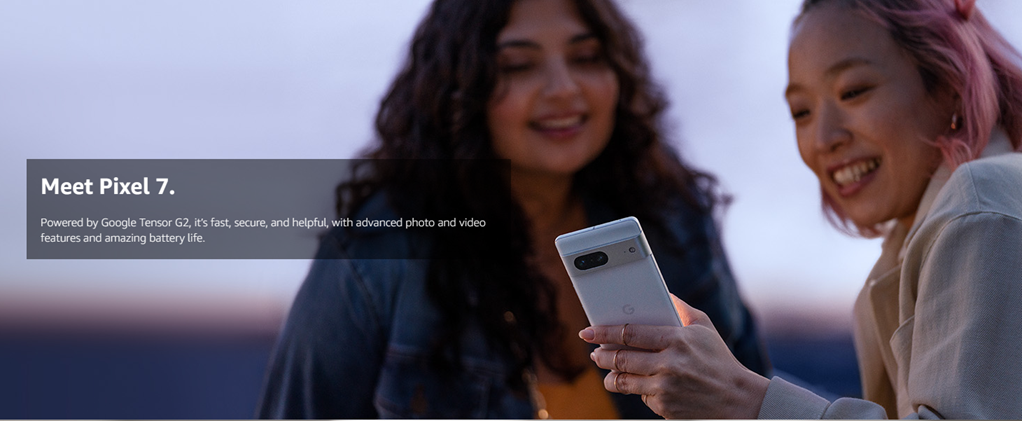 Meet Google Pixel 7. Powered by Google Tensor G2, it’s fast and secure, with amazing battery life and the advanced Pixel Camera for beautifully authentic, accurate photos with Real Tone and stunning video with Cinematic Blur. Plus, it’s Pixel’s most refined design, made with recycled materials.[11] LEGAL [1]Compared to Pixel 6. Speed and power efficiency claims based on internal testing on pre-production devices. [2]Works with all major carriers. 5G service is carrier dependent. Requires a 5G data plan (sold separately). 5G service not available on all carrier networks or in all areas. Contact carrier for details. 5G service, speed, and performance depend on many factors, including carrier network capabilities and signal strength. Actual results may vary. Some features not available in all areas. Data rates may apply. See g.co/pixel/networkinfo for info. [3]For “over 24 hours”: Estimated battery life based on testing using a median Pixel user battery usage profile across a mix of talk, data, standby, and use of other features. Average battery life during testing was approximately 31 hours. Battery testing conducted on a major carrier network. For “Up to 72 hours”: Estimated battery life based on testing using a median Pixel user battery usage profile across a mix of talk, data, standby, and use of limited other features that are default in Extreme Battery Saver mode (which disables various features including 5G connectivity). Battery testing conducted on a major carrier network. For both claims: Battery testing conducted in California in mid 2022 on pre-production hardware and software using default settings, except that, for the “up to 72 hours” claim only, Extreme Battery Saver mode was enabled. Battery life depends upon many factors and usage of certain features will decrease battery life. Actual battery life may be lower. [4]Measured diagonally; dimension may vary by configuration and manufacturing process. Smooth Display is not available for all apps or content. [5]Not available for all camera apps or modes. [6]Coming soon. Restrictions apply. Some data is not transmitted through VPN. Not available in all countries. All other Google One membership benefits sold separately. Use of VPN may increase data costs depending on your plan. See g.co/pixel/vpn for details. [7]Earbuds and watch sold separately. Requires Pixel Buds Pro connected with Fast Pair to a device with location history enabled. Requires Google Pixel Watch to be connected to a compatible device. [8]Designed to comply with dust and water protection rating IP68 (for Pixel 7 and Pixel 7 Pro) and IP67 (for Pixel 6a) under IEC standard 60529 when each device leaves the factory but the device is not water or dust proof. The accessories are not water or dust resistant. Water resistance and dust resistance are not permanent conditions and will diminish or be lost over time due to normal wear and tear, device repair, disassembly or damage. Dropping your device may result in loss of water/dust resistance. Liquid damage voids the warranty. See g.co/pixel/water for details. [9]Requires Google Photos app. Magic Eraser may not work on all image elements. [10]Some third party apps and data may not be transferred automatically. Visit g.co/pixel/copydatahelp for information. [11]Recycled materials are approximately 19% of phone based on weight. [12]Not available in all languages or countries. Not available on all media or apps. See g.co/pixel/livetranslate for more information. Translation may not be instantaneous. [13]Maximum resolution and field of view with RAW image files setting turned on. Setting is turned off by default. See g.co/pixel/photoediting for more information. [14]Storage specifications refer to capacity before formatting. Actual formatted capacity will be less. [15]Unblurring may not work on all photos or videos with faces. [16]Requires compatible smart device. [17]The Google One and YouTube Premium 3-month trial offers are available to eligible users with the purchase of Pixel 7 Pro. Offer expires December 15, 2023 at 11:59 pm PT. Valid form of payment required at sign-up, but you will not be charged until the trial period expires. Cancel anytime. See youtube.com/premium/restrictions and one.google.com/offer/terms-and-conditions/pixel7and7pro for full terms. [18]See g.co/pixel/astrophotography for details. [19]Watch and earbuds sold separately. [20]Pixel Stand sold separately. Wireless charging rates up to 20W (Pixel 7) and up to 23W (Pixel 7 Pro) charging with Google Pixel Stand (2nd gen) (sold separately). Up to 12W with Qi-certified EPP chargers (sold separately). Actual results may be slower. [21]Measured diagonally; dimension may vary by configuration and manufacturing process. [22]Wireless charging rates up to 20W (Pixel 7) and up to 23W (Pixel 7 Pro) charging with Google Pixel Stand (2nd gen) (sold separately). Up to 12W with Qi-certified EPP chargers (sold separately). Actual results may be slower. Fast wired charging rates (up to 18W on Pixel 6a, up to 20W on Pixel 7 and up to 23W on Pixel 7 Pro) are based upon use of the Google 30W USB-C® Charger or Google 18W USB-C® (Pixel 6a only) plugged into a wall outlet. Actual results may be slower. Chargers and Pixel Stand sold separately. [23]Estimated battery life based on testing using a median Pixel user battery usage profile across a mix of talk, data, standby, and use of other features. Average battery life during testing was approximately 29 hours. Battery life depends upon many factors and usage of certain features will decrease battery life. Battery testing conducted in California in early 2022 on pre-production hardware and software, using default settings. Battery testing conducted using Sub-6 GHz non-standalone 5G (ENDC) connectivity. Actual battery life may be lower.