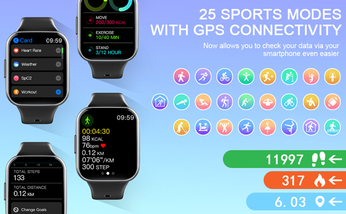- 25 Sports Modes and Activity Tracker: Our sport watch supports 25 sports modes(Walking, Running, Cycling, Rugby, Yoga, Soccer, basketball, etc). Fitness tracker watch accurately records all-day activities such as steps, distance walked, calories burned and active minutes, motivating you to reach your exercise goal with real-time statistics on the fitness smartwatch. Connecting the GPS in your cellphone can track all your workout routes and physical status during exercise. Stay motivated all day!