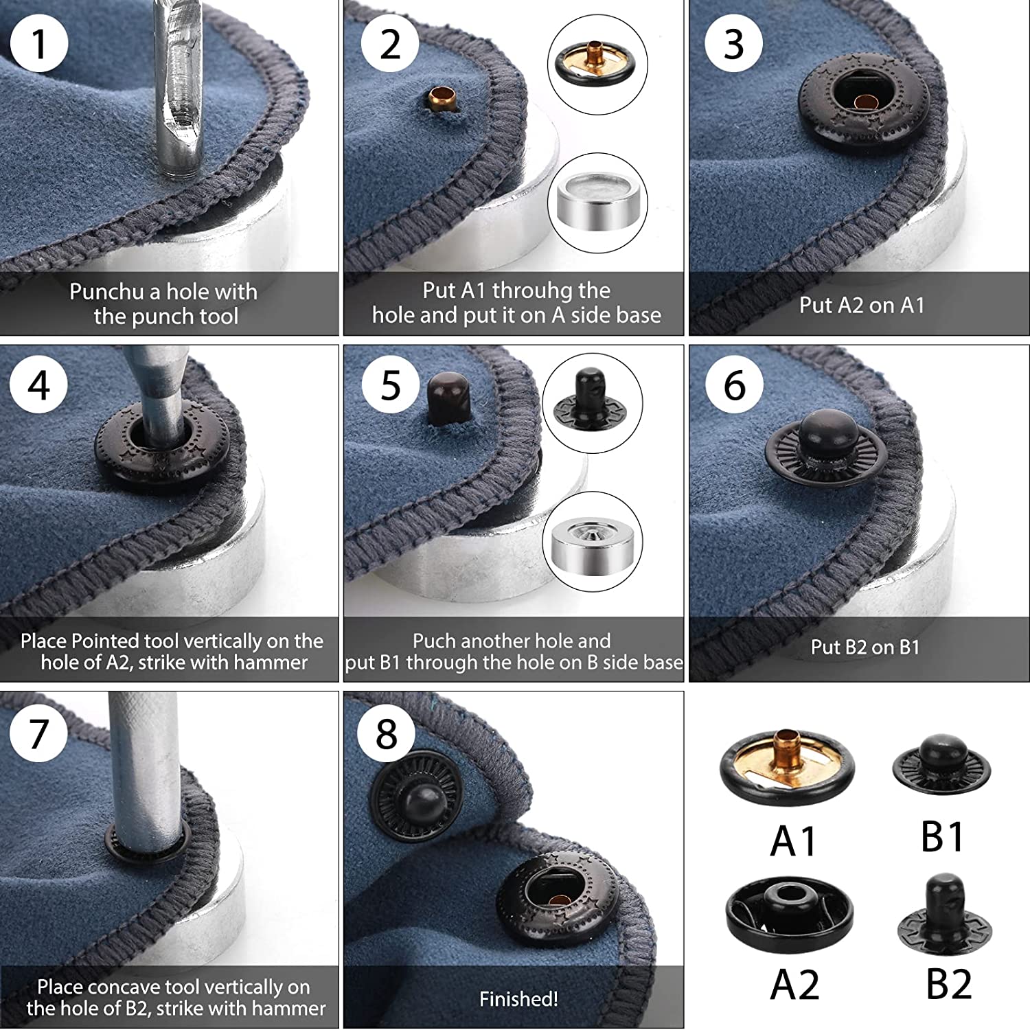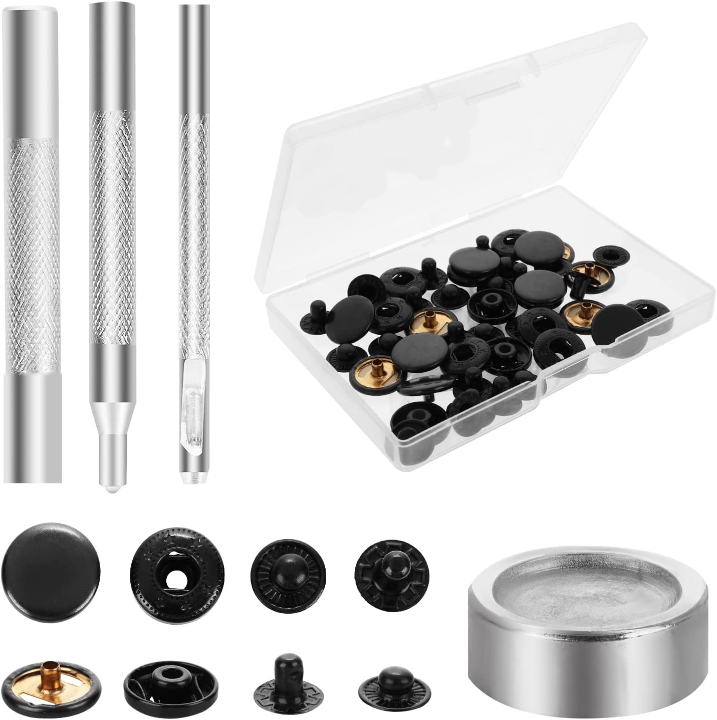 • Pack Listing:12 pairs of snaps kits, each pair has 4 small parts, caps, washers, sockets, and studs, and also come with 4 installation tools. These will be packaged in a transparent plastic box, convenient for your storage and use.