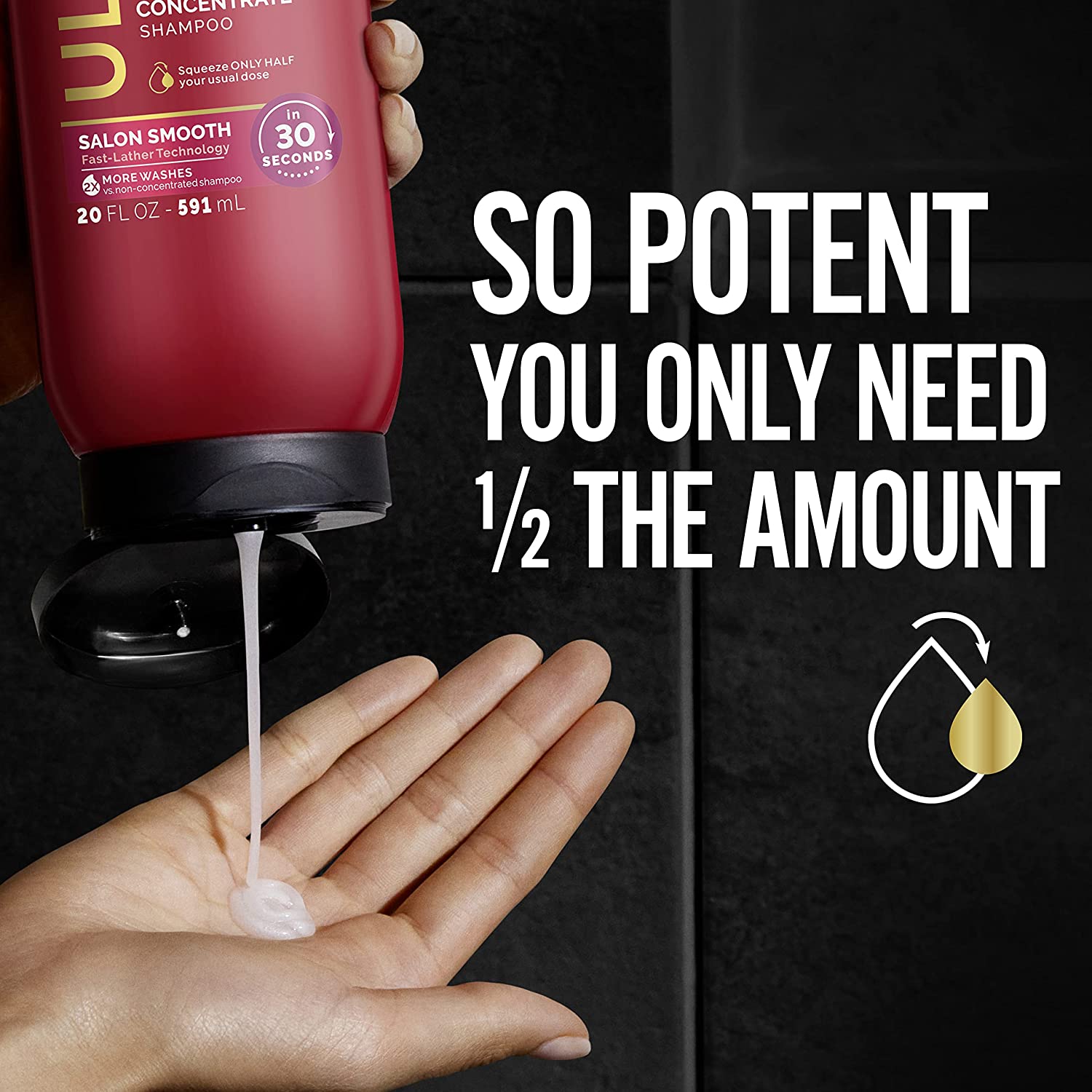 TRESemmé Ultra Keratin Smooth Concentrate System delivers salon-level smoothness and shine in 30 seconds and transforms frizzy hair. This shampoo and conditioner system delivers 2X more washes* and contains 2X the keratin smoothing actives per concentrated drop.