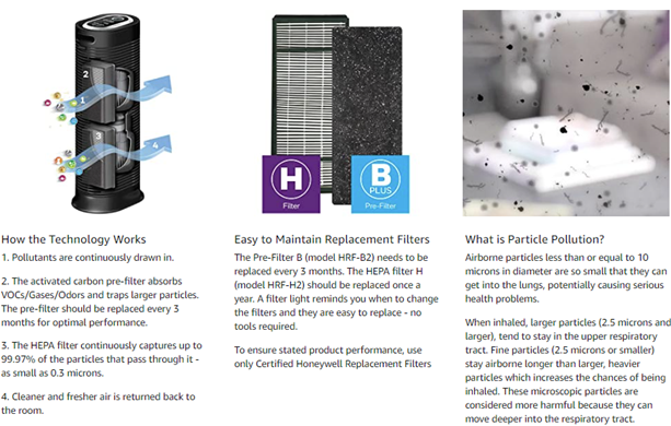 • HONEYWELL AIR PURIFIERS: Our air purifiers help remove allergens, dust, odors & VOCs. If you have allergies, pets or stale indoor air, air purifiers help remove airborne particles & improve air quality.