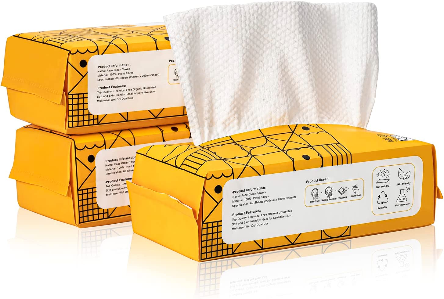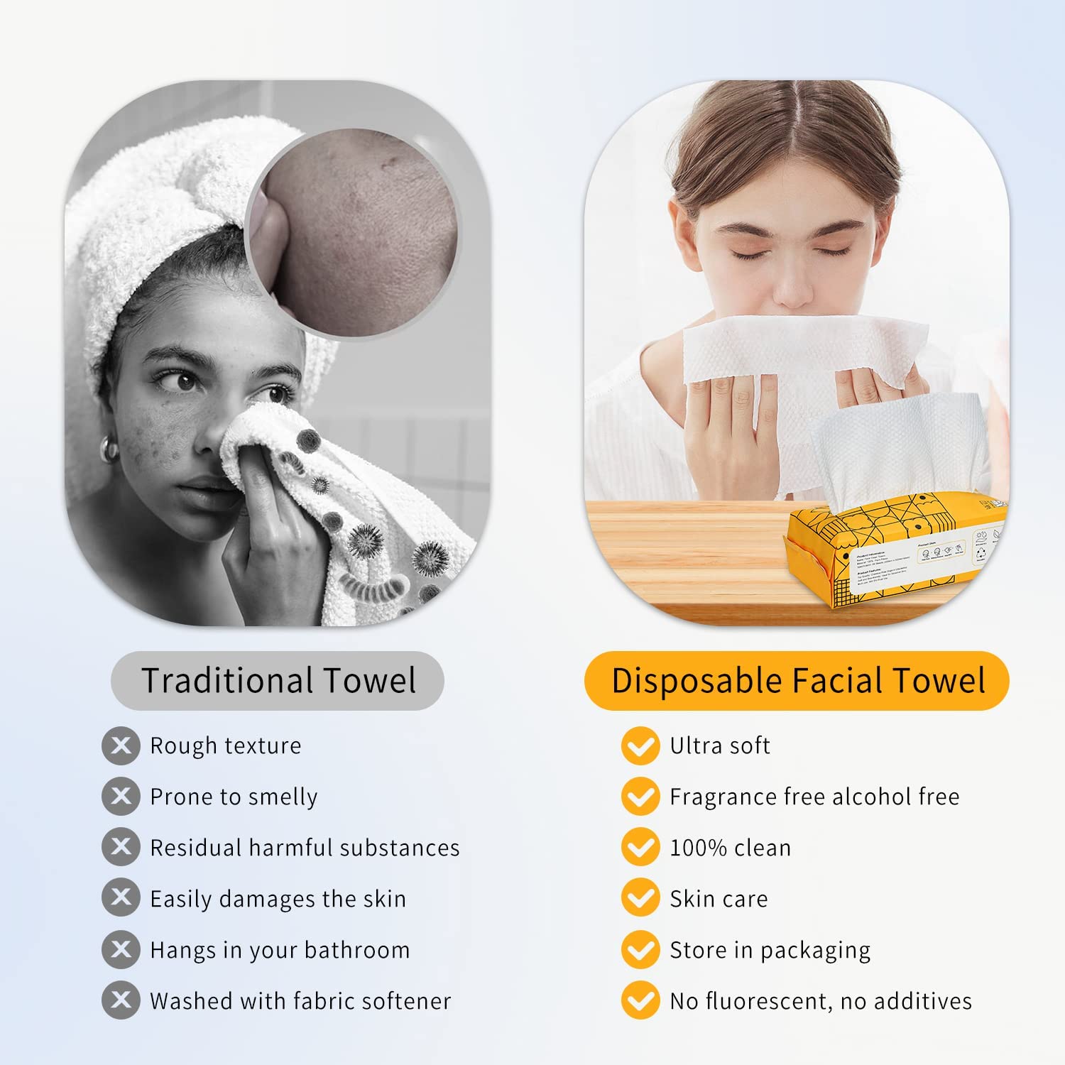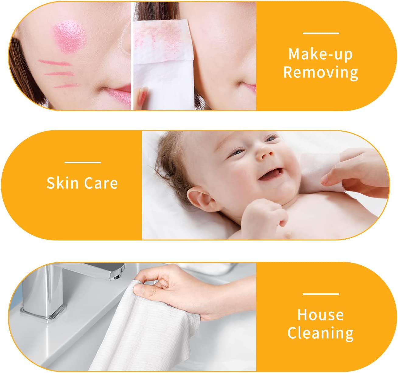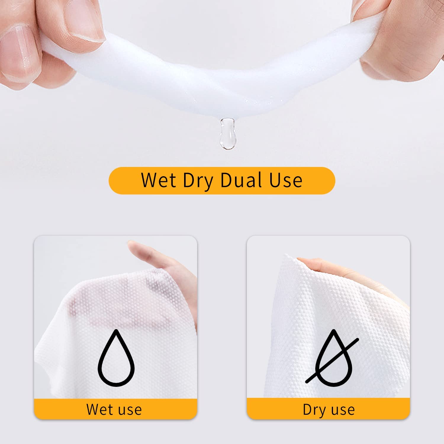 Disposable Face Towel, Facial Tissues, Wet Dry Face Cloths, Biodegradable Clean Towels, Makeup Remover Wipes Ultra Soft for Sensitive Skin, Extra Thick for Cleansing, Skincare and Makeup Removing