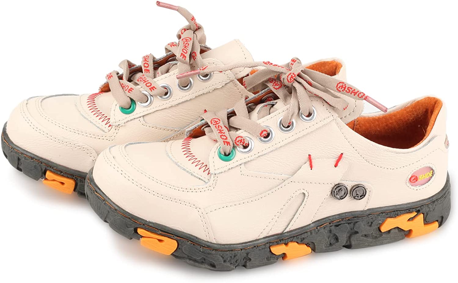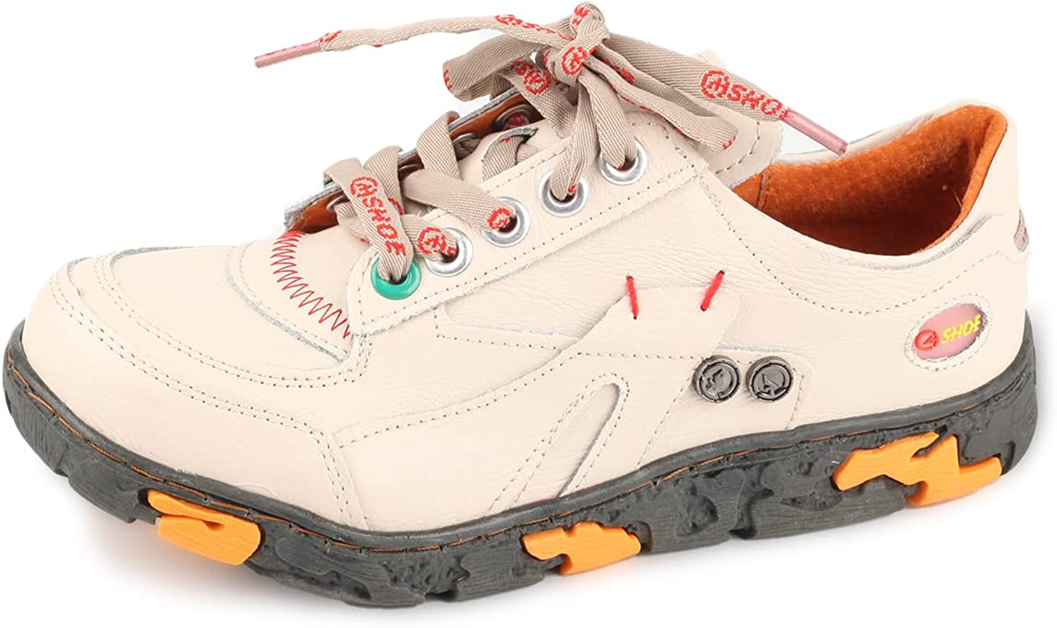 CHSHOER Women's Leather Patchwork Shoes Lace-Up Casual Shoes