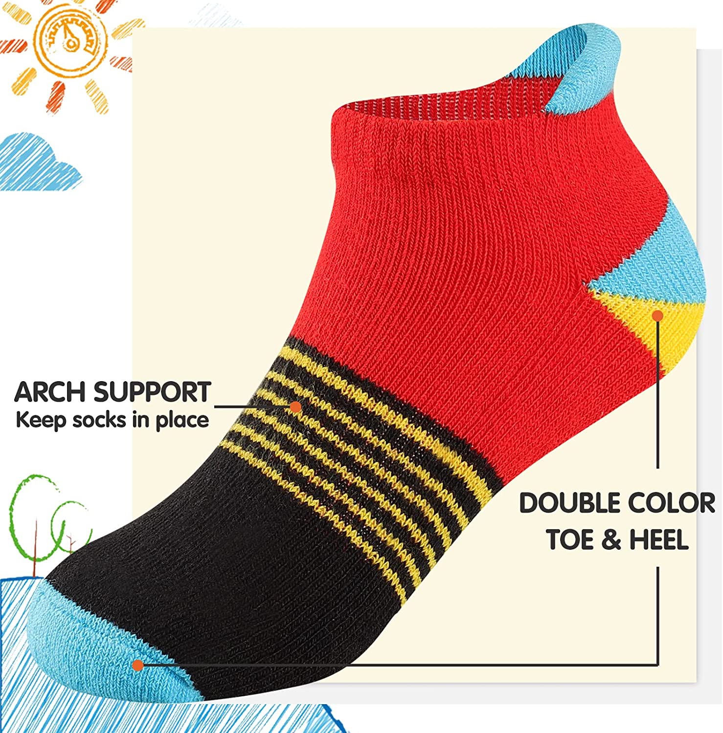 ARCH SUPPORT & REINFORCEMENT: The kids short socks with arch band add support and stability, keeping socks in place and reducing foot fatigue. Reinforced toe and heel make socks last longer.