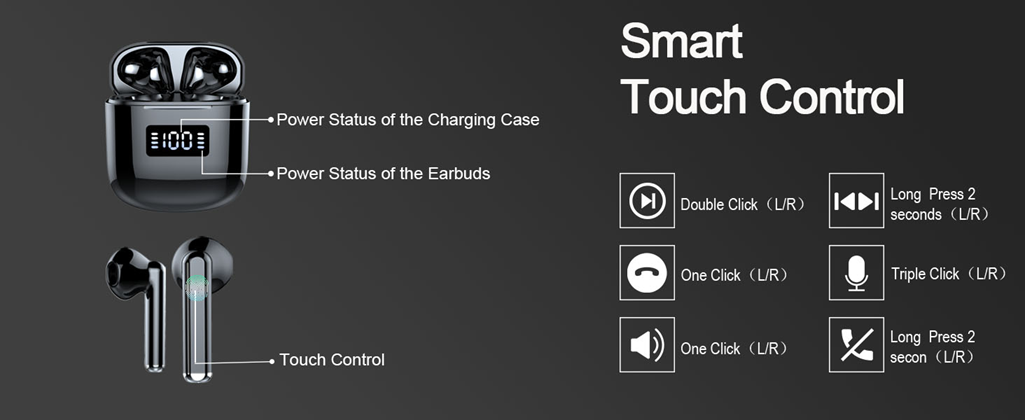 - USB-C Fast Charge and LED Power Display: With UCB-C quick charge, it only takes 1hr to charge the changing case. The bluetooth earbud can last 5 hours playtime from a single charge and provides extra 20 hours playtime with charging case. The digital portion of the LED screen indicates the percentage of how much the real-time battery has left of the charging case. You can precisely control the power status of the charging box. (Note: Please fully charge it for the first use.)
