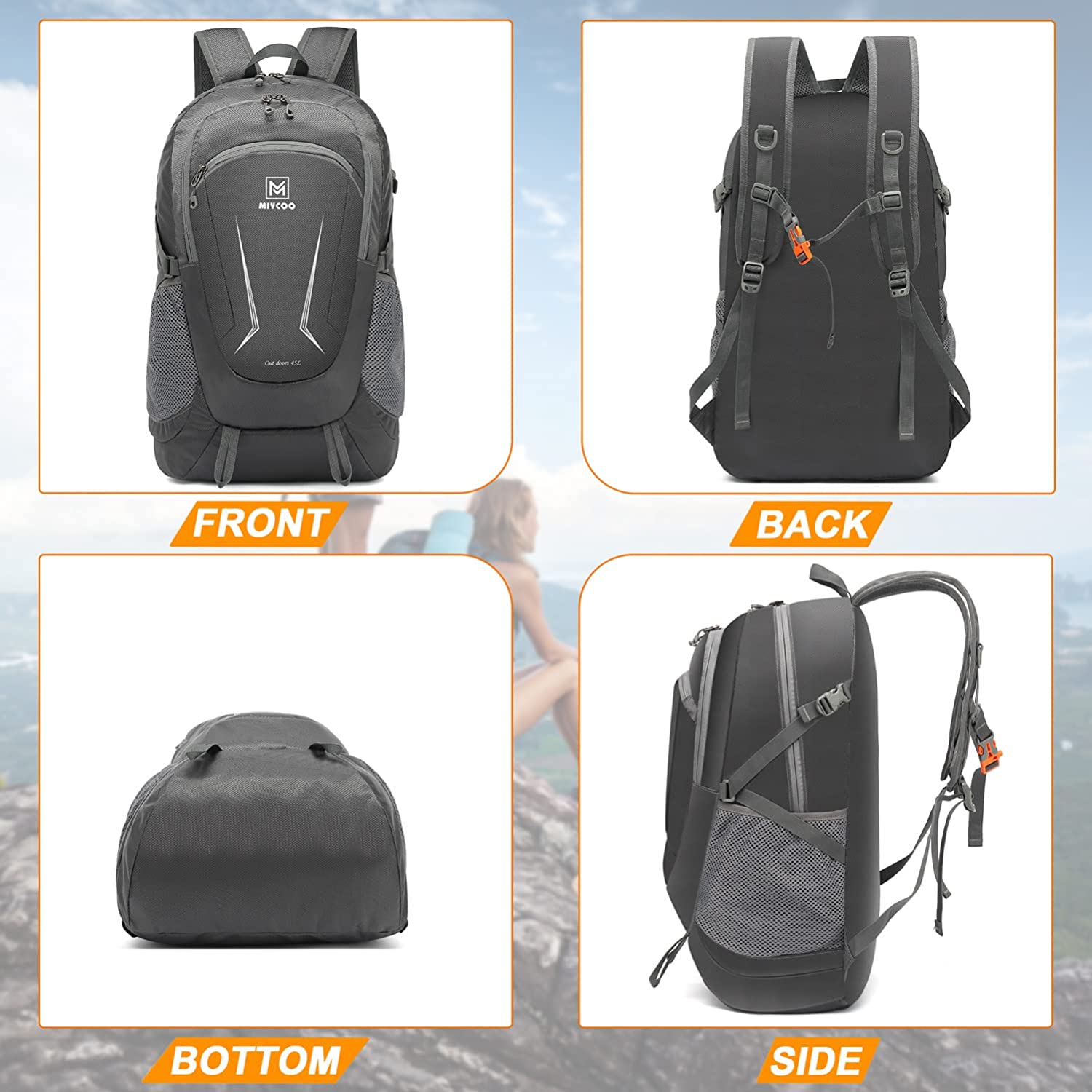 MIYCOO Lightweight Backpack for Men Women - Packable Hiking Travel Backpack - Foldable Outdoor Camping Waterproof Daypack Grey