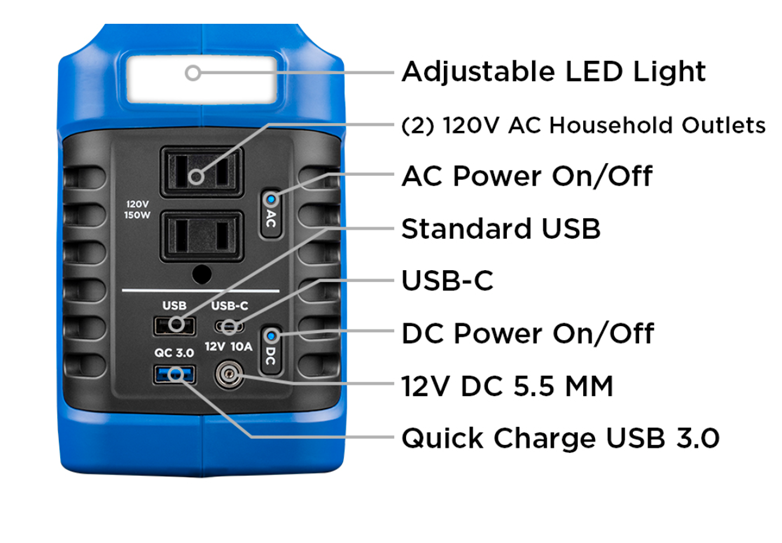It supports charging for all your necessities and more like mini refrigerators, GoPros, drones, lights, or speakers.