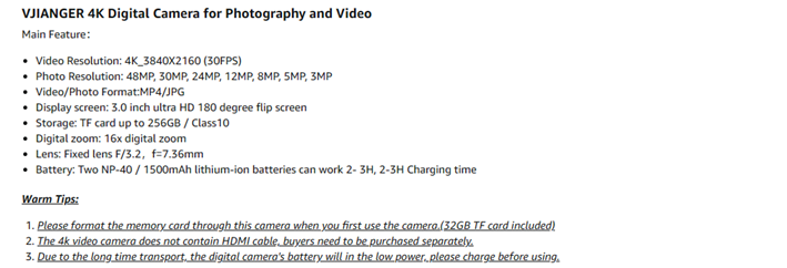 - ?Digital Camera for Photography ?: The 4k small digital camera with 30fps video resolution and 48 megapixel, provides a smooth shooting experience than 2.7K or 1080P video cameras, which can capture every excellent moment while vlog recording, the best camera for youtube. Equipped with wide angle & macro lenses and supports 16X Digital Zoom to get closer focus from far away and take close-up with clear details photos or recorder a wider range of scenery.