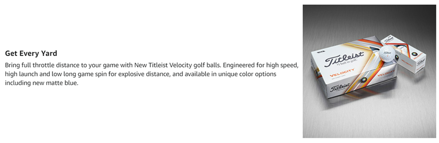 Bring full-throttle distance to your game with New Titleist Velocity golf balls. Engineered for high speed, high launch, and low game spin for explosive distance.