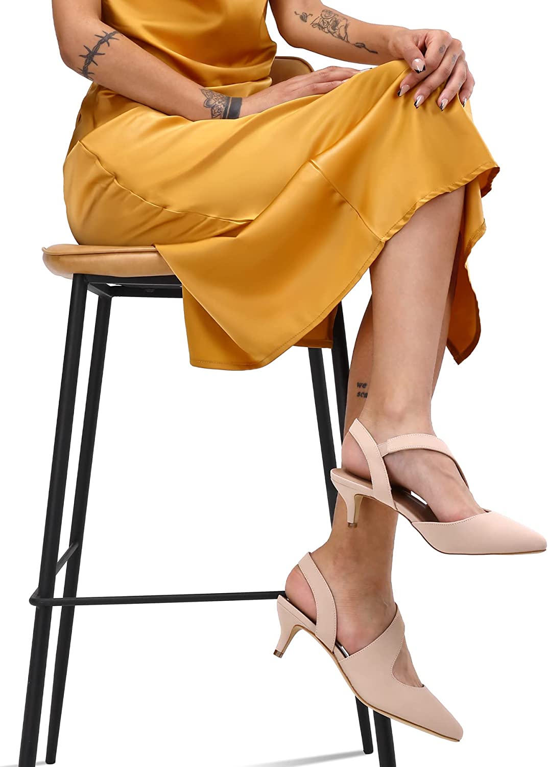 • FASHION: Women's lady pumps with slingback design and classic pointed toe create the illusion of longer legs. Slip into a relaxed and exquisite state of mind with these pumps.