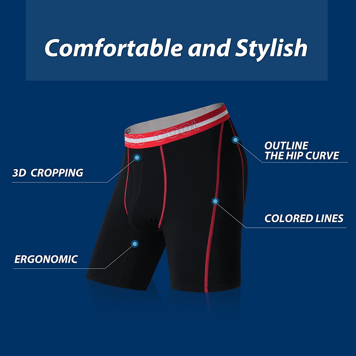 【PREMIUM FABRIC】: This men's underwear uses bamboo viscose fabric, which is skin-friendly, soft, cool and breathable. It fits your skin very well and doesn't cause allergies, static and other issues. In addition, the reactive printing and dyeing technology is used in the dyeing process of the fabric.Then this boxer briefs will not fade and will not harm the skin.
