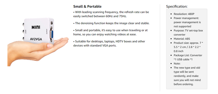 - 【Easy To Operate】Plug and play, no need for other driver software, convenient and fast.It is suitable for desktops, laptops, HDTV boxes and other devices with standard VGA ports. If you have any questions about our product, please feel free to contact us. We will do our best to solve your problem.