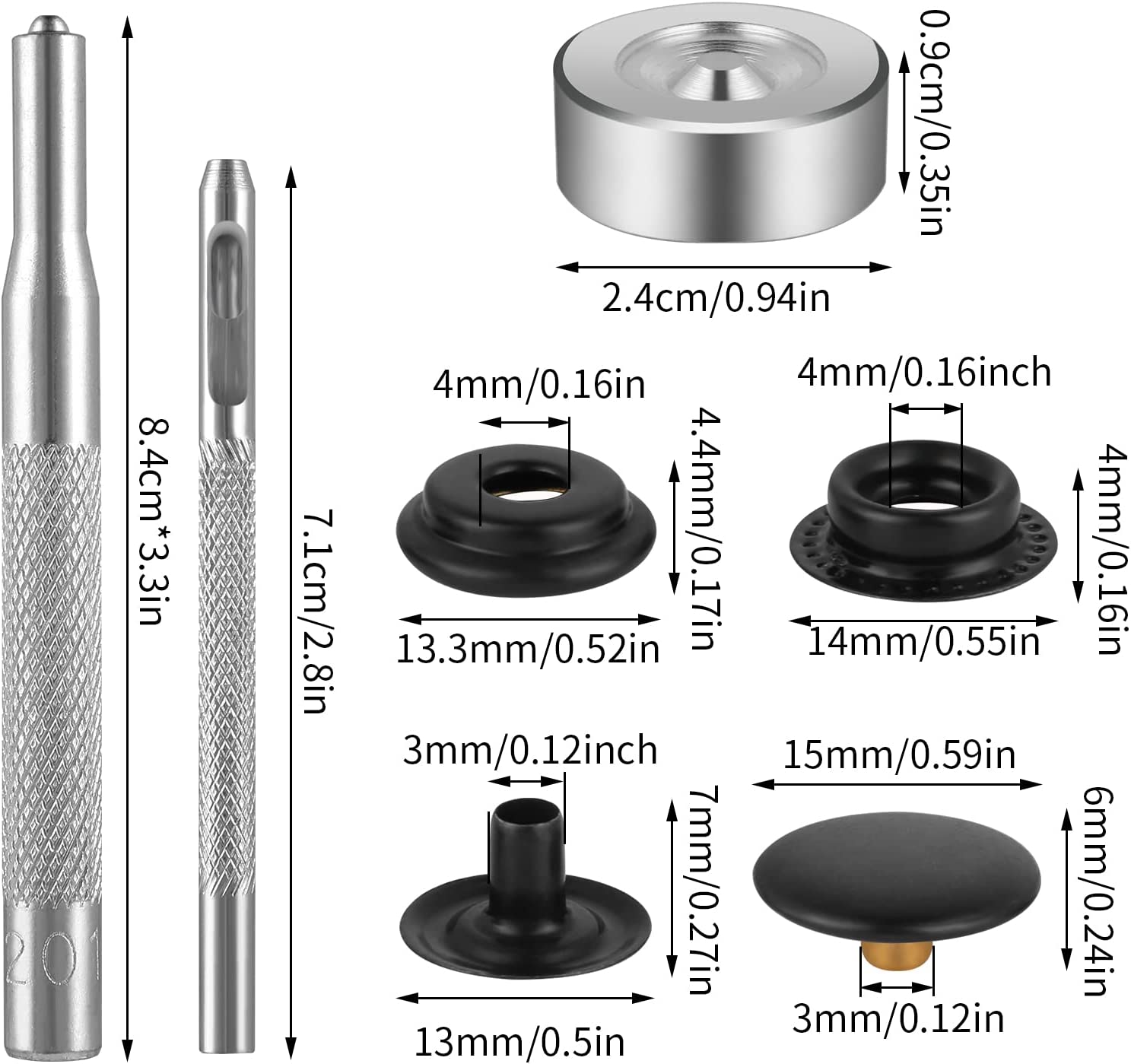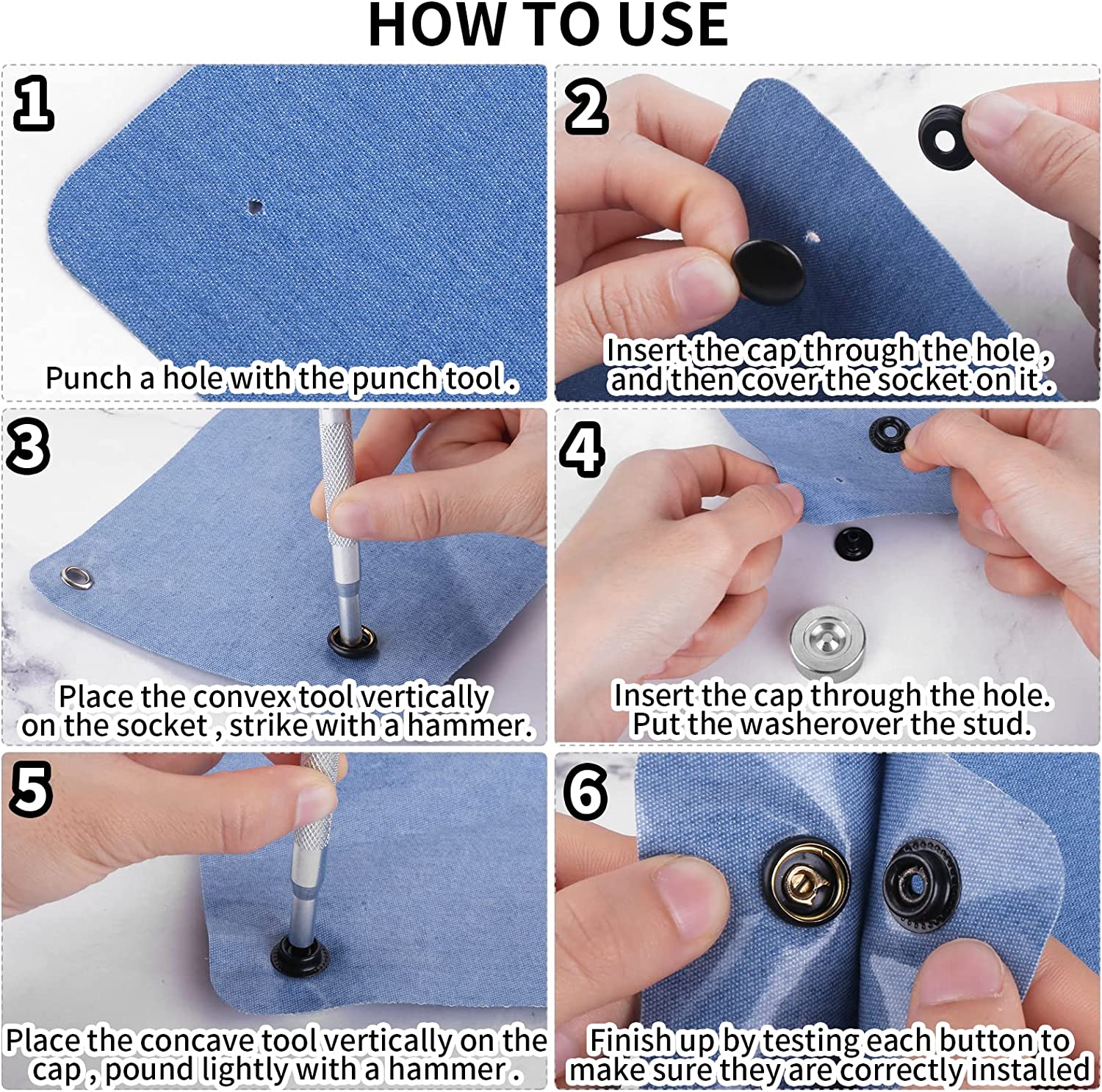 • Easy to Use: This metal snap button kit is very easy to install and use, familiar with 4 installation and punching tools, and beginners can easily learn to use it. Size details are shown in the picture