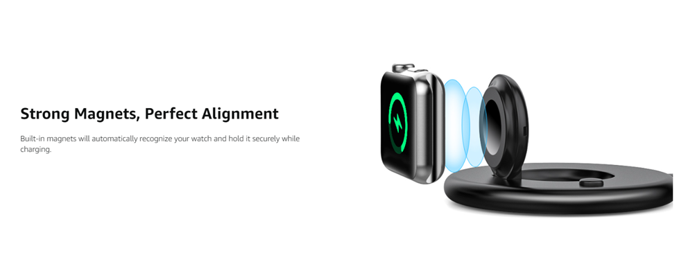 - ?【Secure Magnetic Connection】? The iwatch charger fast charging features strong magnets that securely attach your watch the entire time. The watch begins charging as soon as the magnet grips it, providing you a hassle-free charging experience with just drop the iwatch on the stand without precise positioning.