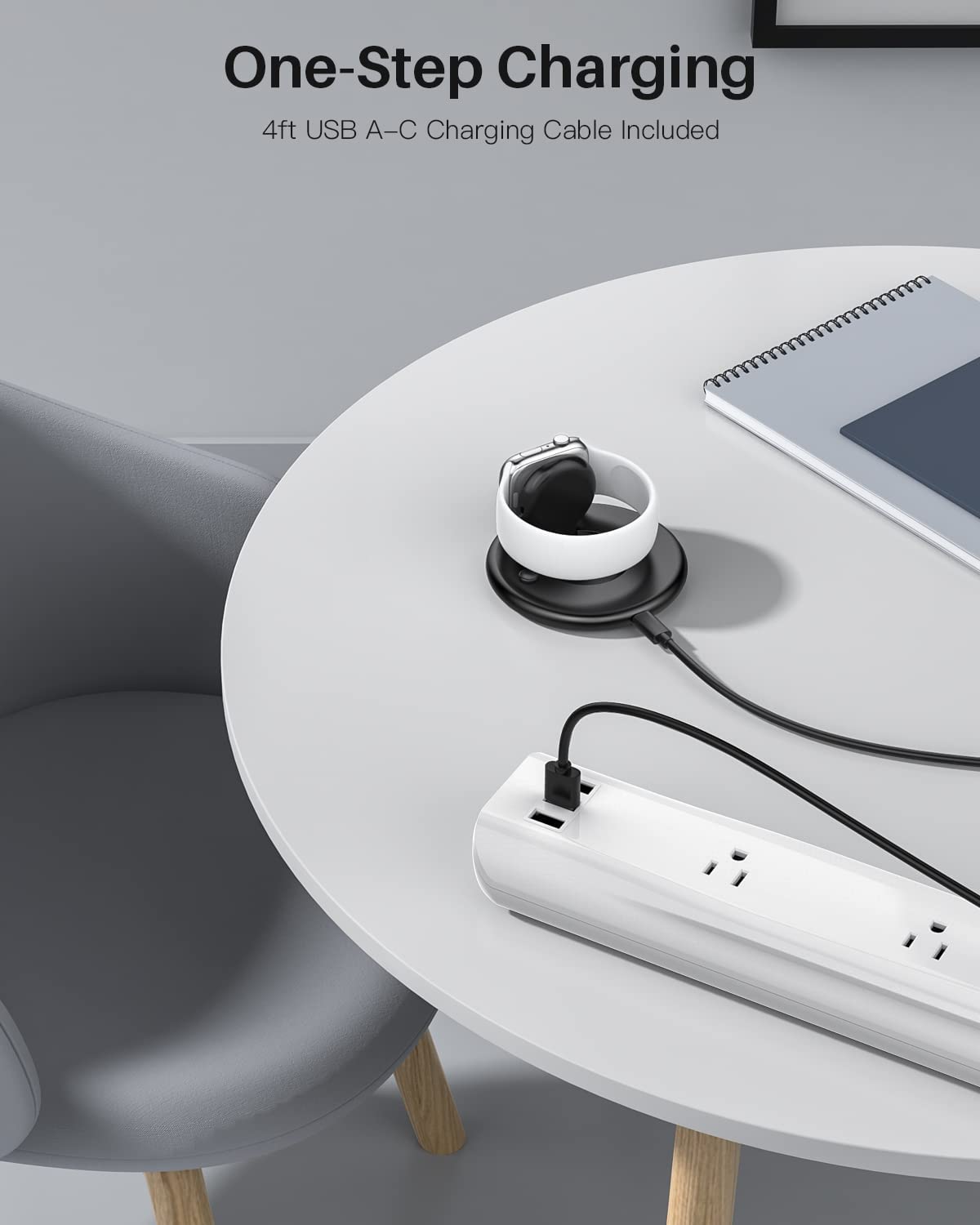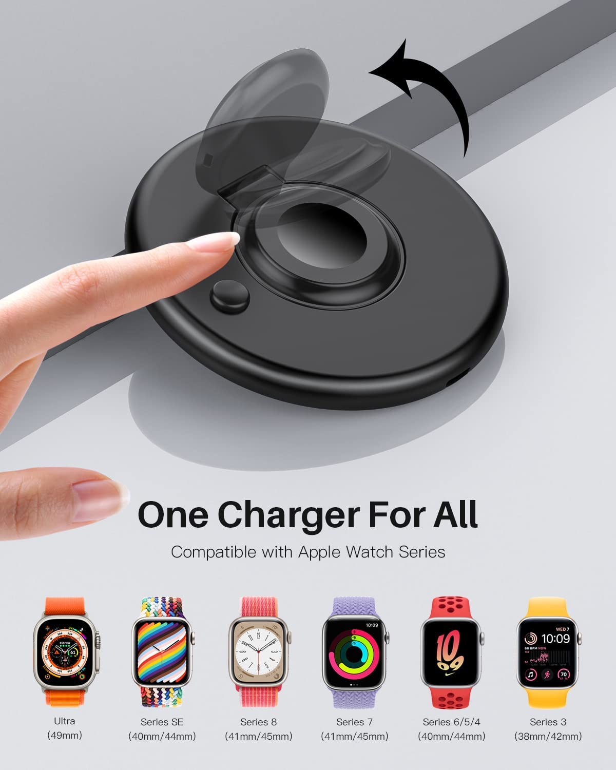 - ?【Foldable & Portable】? Weighting only 50g, with a diameter of 3.5in and thickness of 0.5in (fully collapsed), this designed for Apple watch travel charger can be folded flat for easy stored in your bag with other charging accessories. Its compact size allows fitting in a purse, chest bag, or even a pocket, makes it an ideal travel partner when you're on the go.