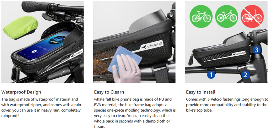 • ?【High Quality Material】Whale Fall bike frame bag are made of COMPOSITE EVA and German Bayer TPU. We tried our best to use materials of high quality to product our bike accessories and make it be your best cycling partner.