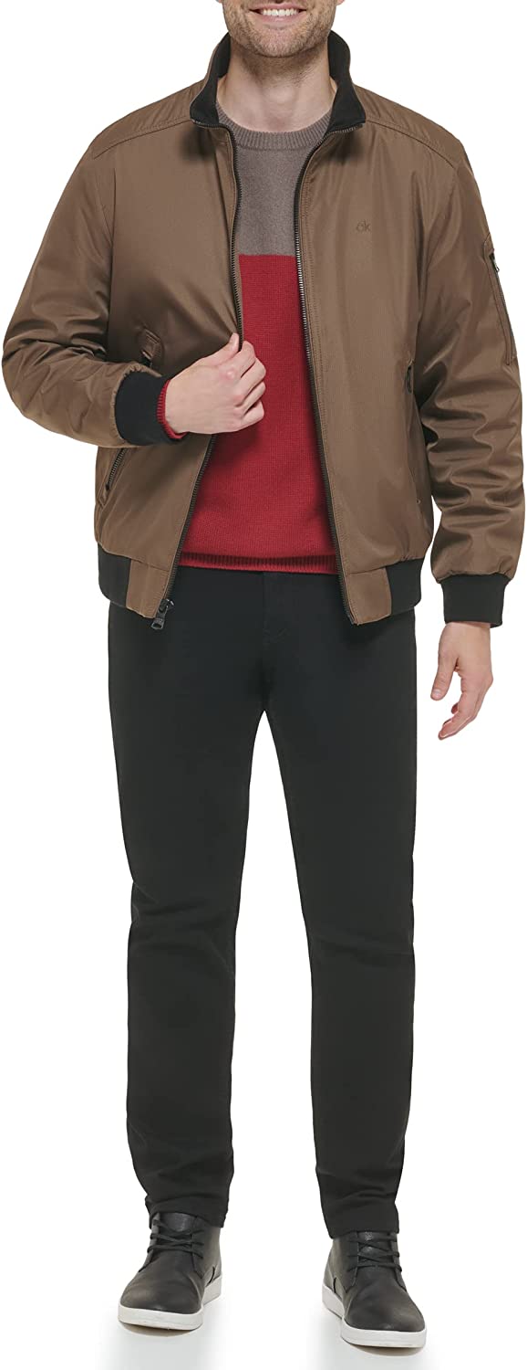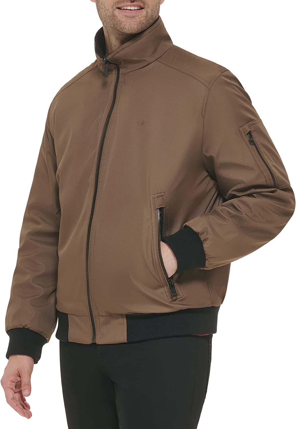 Calvin Klein men's knit hem bomber zip front jacket with details