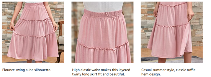 GORLYA Girls Boho Casual Elastic High Waist Tiered Ruffle Hem Long Swing Maxi Skirt 4-14T