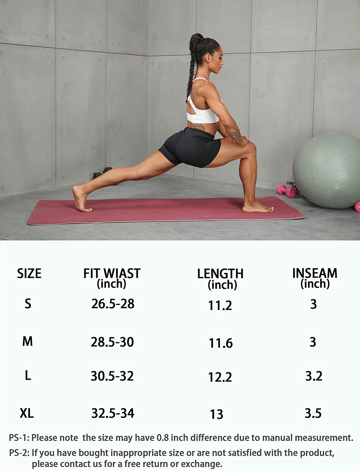 Gusseted crotch design and elastic waistband: These biker shorts are designed with a gusseted crotch that reduces chafing and allows for a full range of motion. The high-rise waistband and tummy control offer a secure and flattering fit, helping you feel confident and comfortable during any exercise