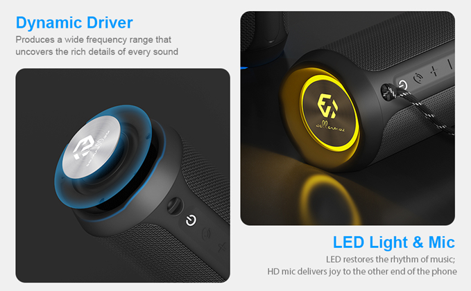 - ?♂️?????? ?? ??? ??: IP67 dustproof and waterproof speaker weights only 440g, making this portable speaker perfect for outdoor, hiking, beach and even as waterproof shower speaker. The built-in mic provides high quality and convenient hands-free call