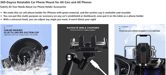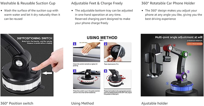 Cidsducac Phone Mount for Car, Dashboard & Windshield Universal Car Mount Phone Holder, Anti-Shake Stabilizer Cell Phone Holder Car Accessories for All Phones, Black