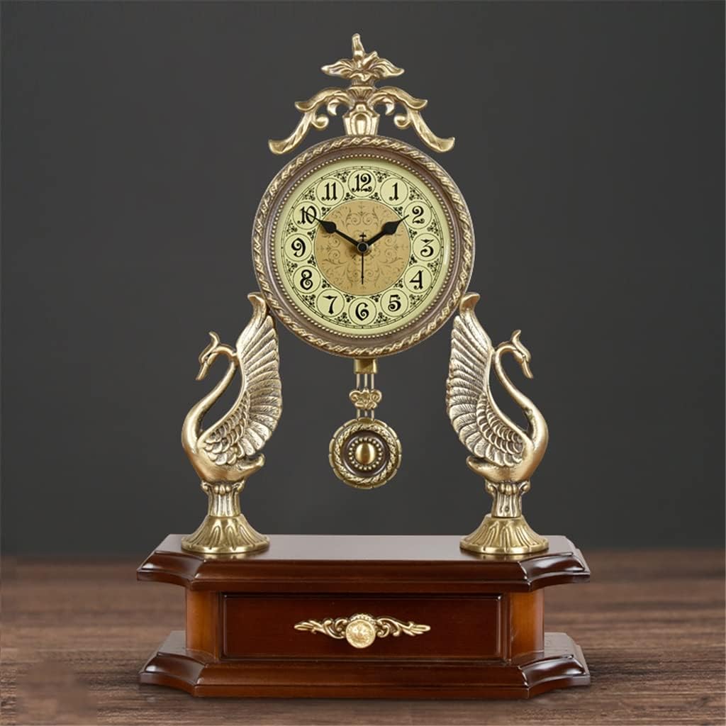 ZLXDP European Antique Mute Desk Clock Large Living Room Quartz Clock Atmospheric Brass Accessories Clock Pendulum Clock Gifts