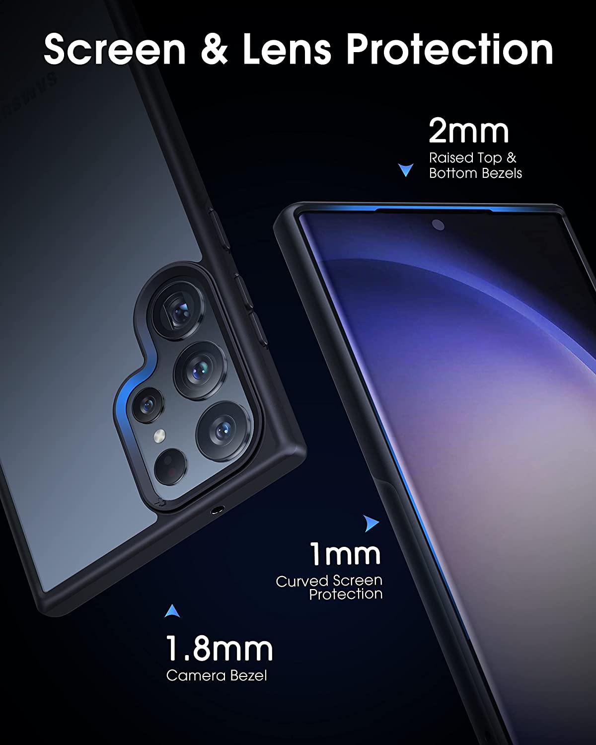 - 【Zero Smudge, Lasting New】Thanks to the zero-smudge matte hard backplane, it is sturdy, scratch-resistant and it stop 100% of fingerprints, oil & lint from sticking to your Samsung S23 Ultra case while providing a silky matte touch feeling.