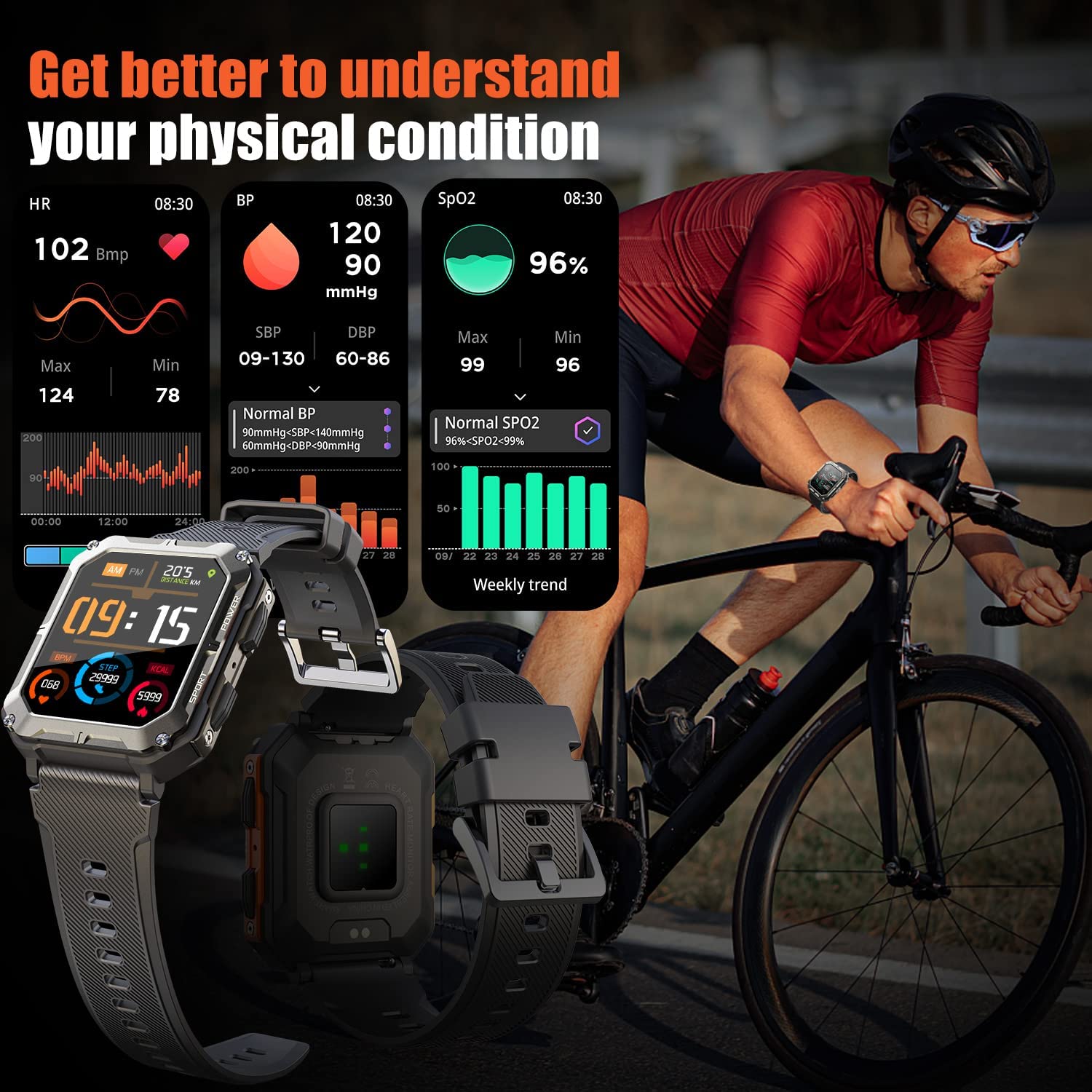 meoonley Military Rugged Smartwatch for Men,Sport Watch with Answer/Make Call IP68 1.83 inch Fitness Tracker Pedometer SpO2 for Outdoor Enthusiasts