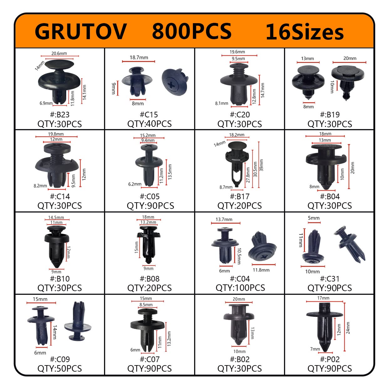 【 GRUTOV CARE FOR YOU】 --GRUTOV focuses on making high-quality plastic rivets at an affordable price. We’re proud to say we believe in our push clip rivets. That’s why we offer FULL SATISFACTION and a lifetime warranty against quality defects. If the plastic screws for car not meet your expectation, we will provide you a FULL REFUND or REPLACEMENT.