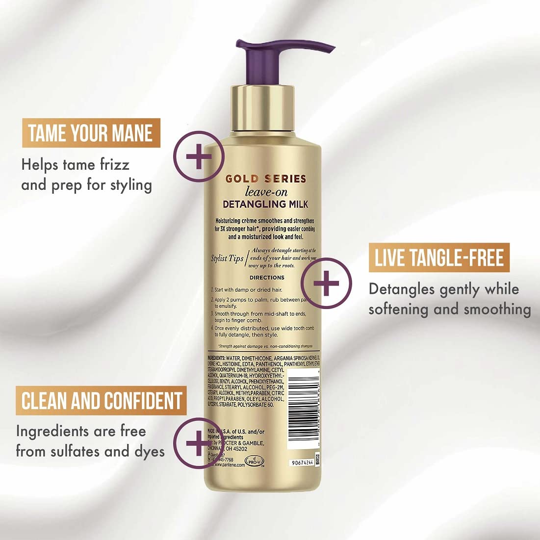 Experience the gold standard in moisture with Pantene Gold Series Leave-On Detangling Milk. Thoughtfully developed by Black scientists and perfected by Black hair stylists, every bottle of our sulfate-free, dye-free formula is infused with Argan Oil. It helps detangle and soften curls and coils, smoothing the cuticle for easier combing. Also try Gold Series from Pantene Moisture Boost Shampoo and Conditioner from the Gold Series Collection, for optimal hair health.