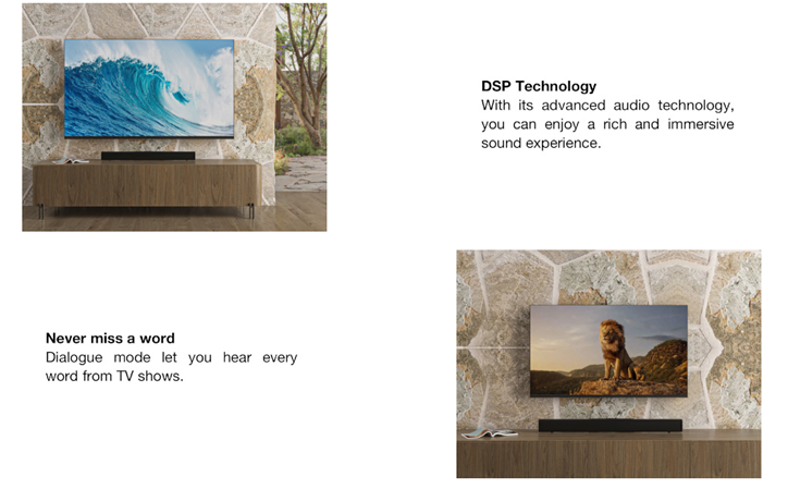 • 【Design Your Own Sound】: Dialogue/music/movie mode, there’s always a mode to satisfy your meets. 3 EQ Modes and the volume control of computer sound bar help you design your own favourite sound mode.