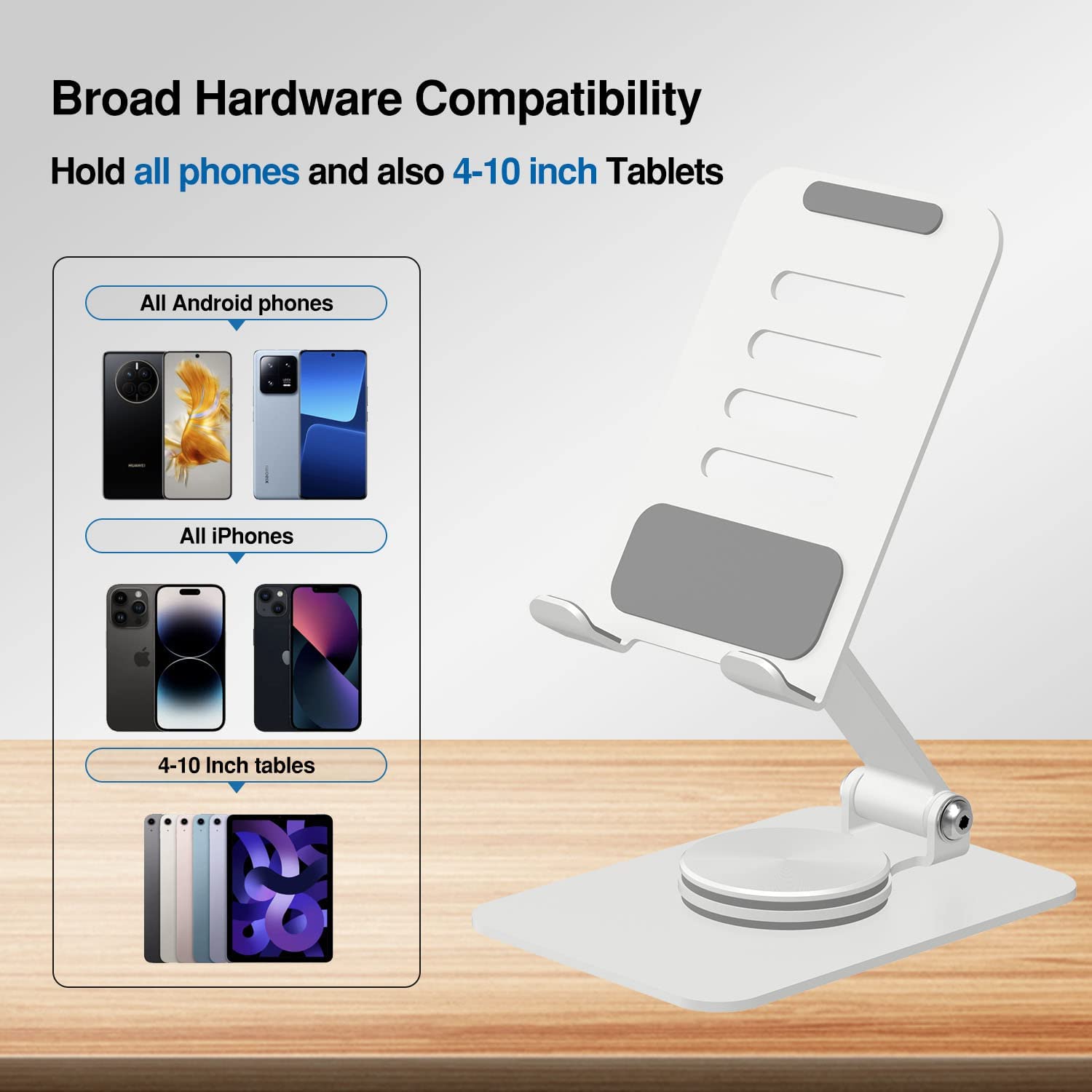 [Multiple Angle Adjustment] : The height and angle of this 360 rotation phone stand can be adjusted, this foldable phone stand provides you comfortable view and reduce neck & back strain