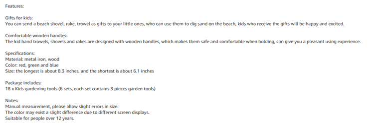 Size Information: the longest garden tools for kids are about 8.3 inches, and the shortest one is about 6.1 inches, small size makes them suitable for small hands to hold; These garden tools will not take up too much storage space when not in use