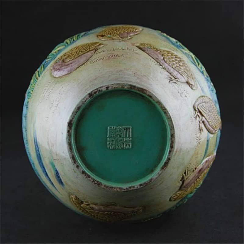 QUUL Classic Green Ceramic Vase Embossment Antique Porcelain Flower Vase for Decoration