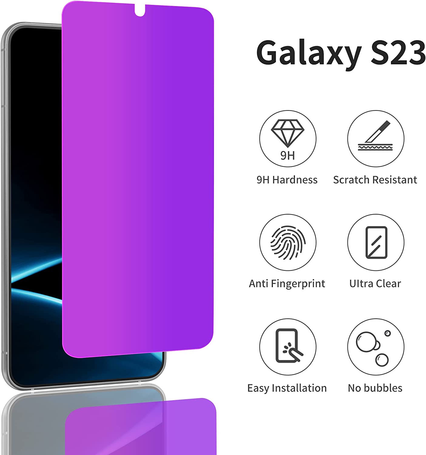 【Personalize】Unlike other Galaxy S23+ screen protectors, our color changes from blue to purple at different angles, making your phone's color changeable, cool, and unique.