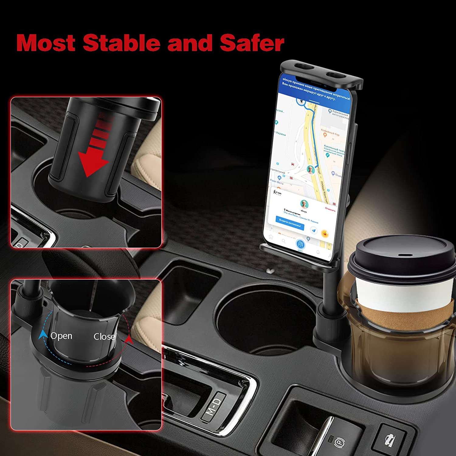 【Detachable Design And Use At Will】The cup holder expander and phone mount are detachable. According to the instruction manual, rotate the rod counterclockwise to remove the pole and phone mount. After disassembly, it is a complete cup holder expander, which can hold your cups well and save more space in the car. You can choose different usage methods according to your preferences. Please refer to the product size carefully before purchasing to determine whether it is suitable for your car.