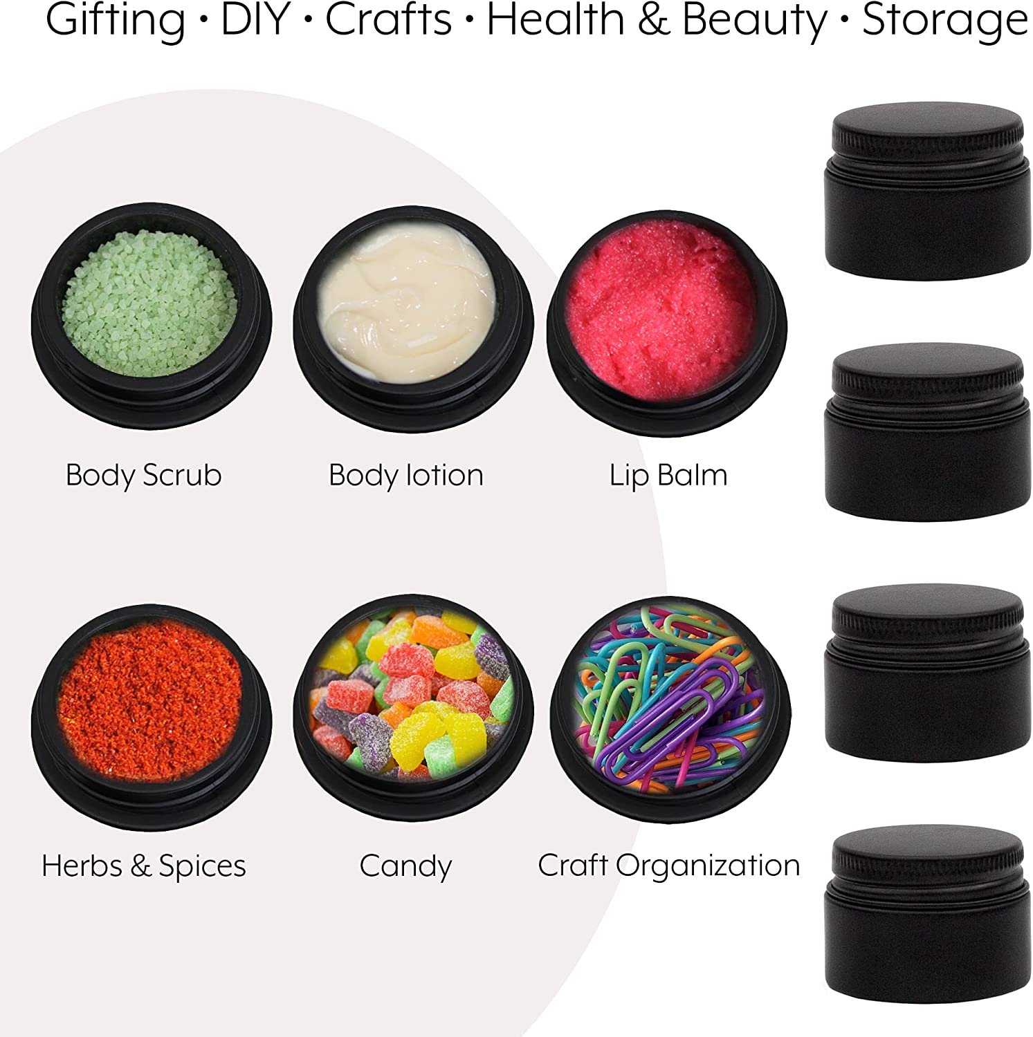 MULTI-USE: Use for balms, creams, lip gloss, eye cream, salves, tinctures, makeup, essential oil aromatherapy blends, sunscreen and more. Can even store herbs or spices or oils for food prep. Great for travel, purse and to go size. Ideal for gifts.