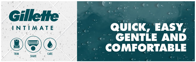 Meet Gillette's gentle and easy intimate shaving lineup that shows the proper respect for your region. Gillette Intimate Razor is engineered to gently shave below the waist with minimal nicks and cuts. The SimplePass™ technology featuring 5 sharp, anti-friction blades provides a close and comfortable shave in the delicate pubic region in a few passes. Enjoy added glide and protection to your intimate shave thanks to the lubrication before and after the blades. The Flexball technology makes the razor easily adaptable to your contours, making shaving in hard-to-reach areas easy. The razor also comes with a shower hook to conveniently store and be ready whenever you need it. Replace the razor refill once the blades have become dull for optimal shaving results. With Gillette Intimate Grooming, you have a routine so simple and easy that you won't need to plan ahead. For a complete intimate grooming routine, use the entire Gillette Intimate grooming line to help prepare and protect pubic hair from shave irritation, and maintain your pubic hair & skin.