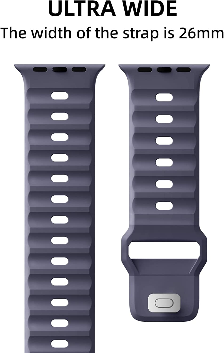 • 26mm Ultra-Wide: Impressively wide, thick Apple Watch Strap take on a rugged look around your wrist to accent your strength and boldness. Made specially for men, our 26mm wide apple watch replacement band is sure to climb up your gift list for dad, friends, sport lovers, etc.