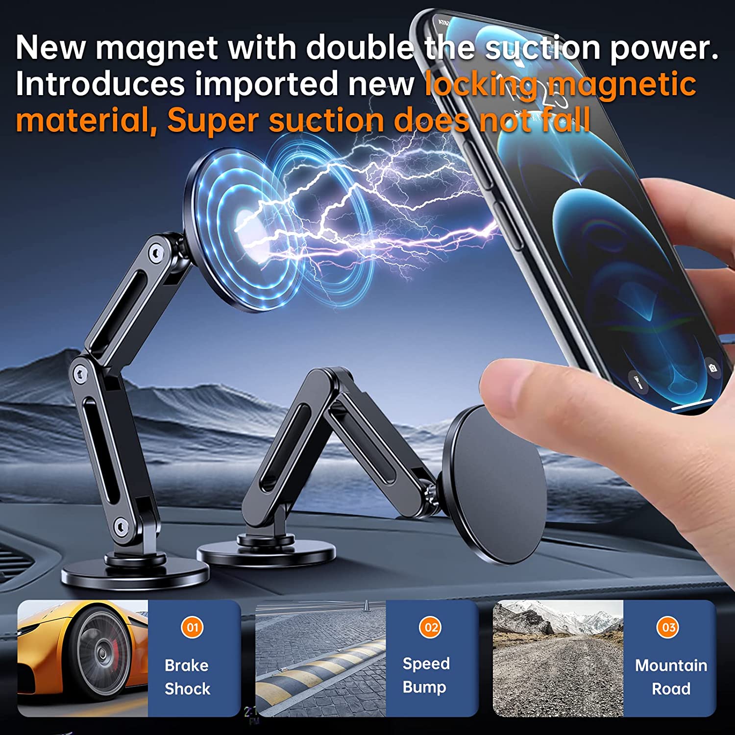 【Super Strong Magnetism】This tesla magsafe phone mount is equipped with 16 larger and stronger n52 magnets, Ensuring that your phone will not fall off while driving on any road. Suitable for magsafe phone mount for car, The enclosed magnetic field will not interfere with signal transmission, Allowing for uninterrupted calls and navigation.(Note: The car holder cannot wirelessly charge the phone.)