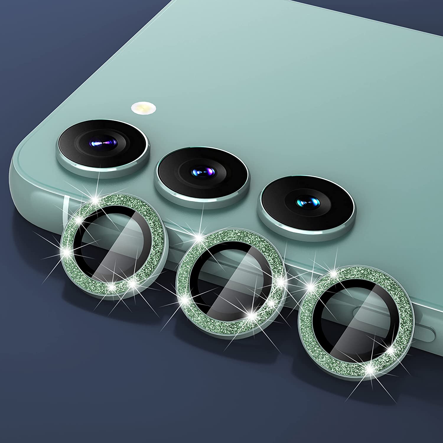Suoman [3+3 PCS] for Samsung Galaxy S23/ S23 Plus Camera Lens Protector, Premium Tempered Glass Glitter Camera Lens Protector for Samsung Galaxy S23/ S23+ [Glitter Diamonds] - Bling Green