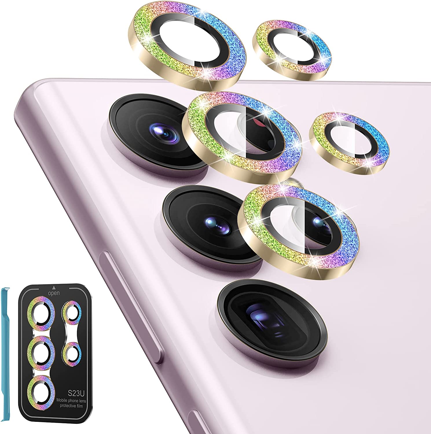 【S23 Ultra Camera Lens Protector】 This S23 Ultra camera lens protector used high-quality aluminum alloy metal and glass screen protector, fully protect your lens, effectively preventing the lens from scratched, dust and bumps. Restore the original color of the phone lens, looks as not installed.